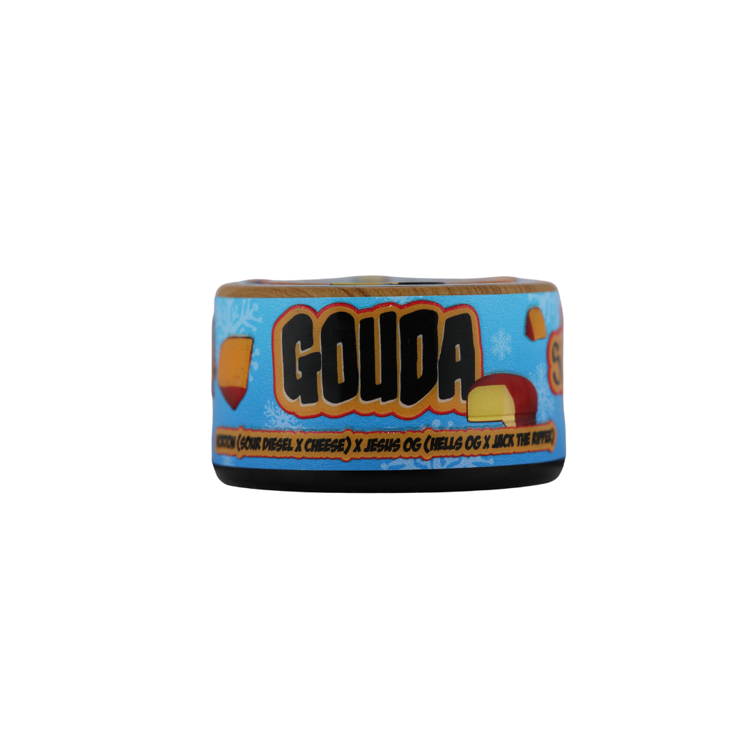 Experience Gouda THCa Rosin by The Real Ridge Boys. This balanced hybrid blend packs an aroma of freshly shaved parmesan and packs a flavor to match with hints of earthiness.
