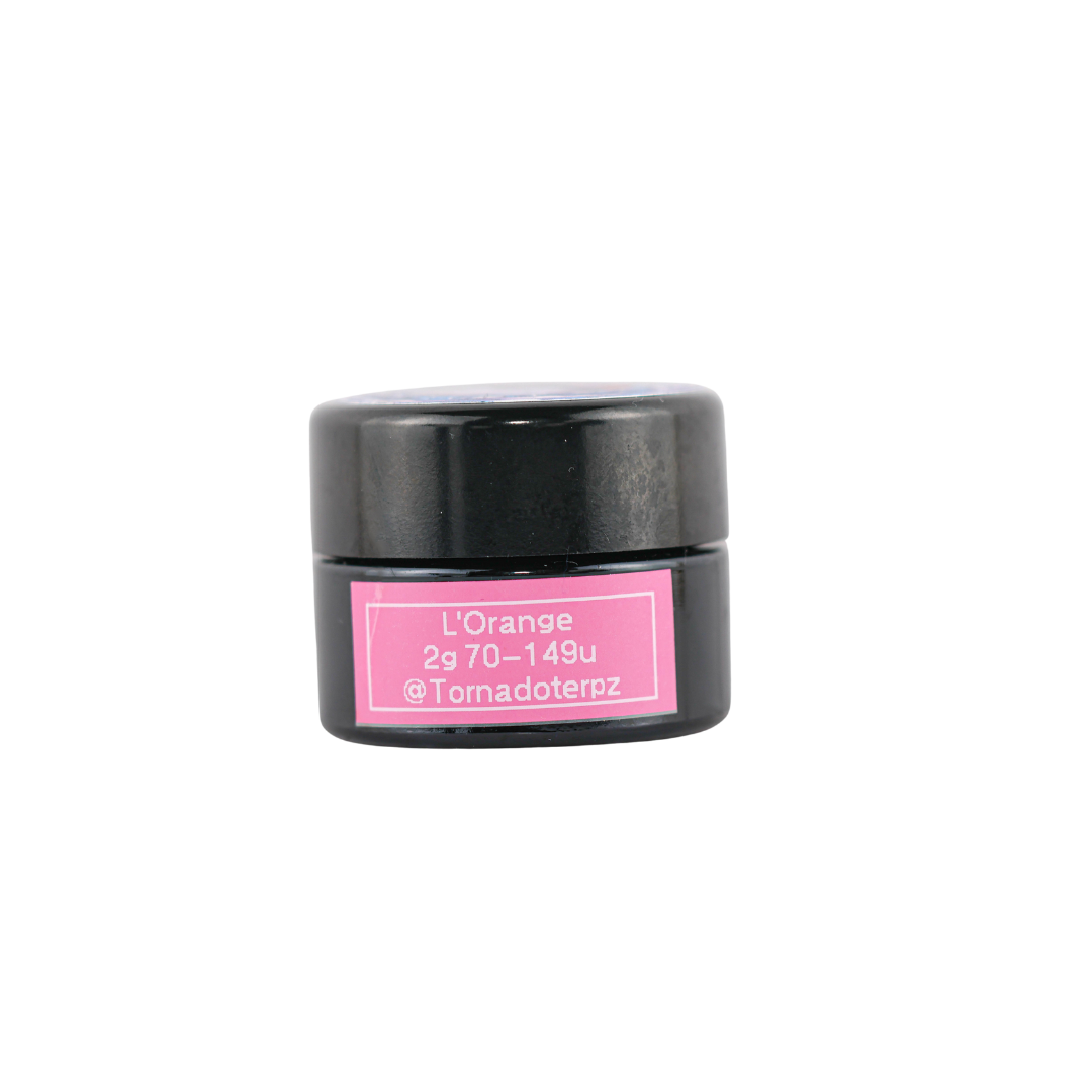 Experience L'Oranges THCa Rosin by Masterball Melts and Tornado Terpz. This sativa hybrid blend packs a sweet and sour citrusy flavor with a light earthy exhale.