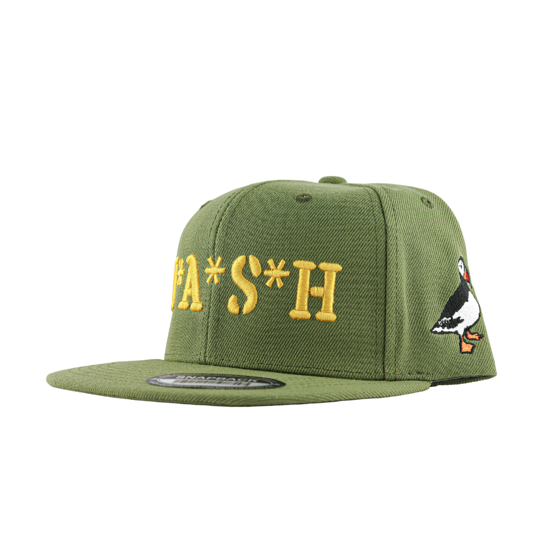 Get a custom H*A*S*H snapback by Puffin Solventless! Features thick bubble embroidery and a Puffin Solventless logo on the side.