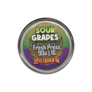 Experience Sour Grape THCa Fresh Press by Red Dragon. This balanced hybrid features notes of tart purple grape, sweet berry candy, subtle citrus zest, and a light floral edge.