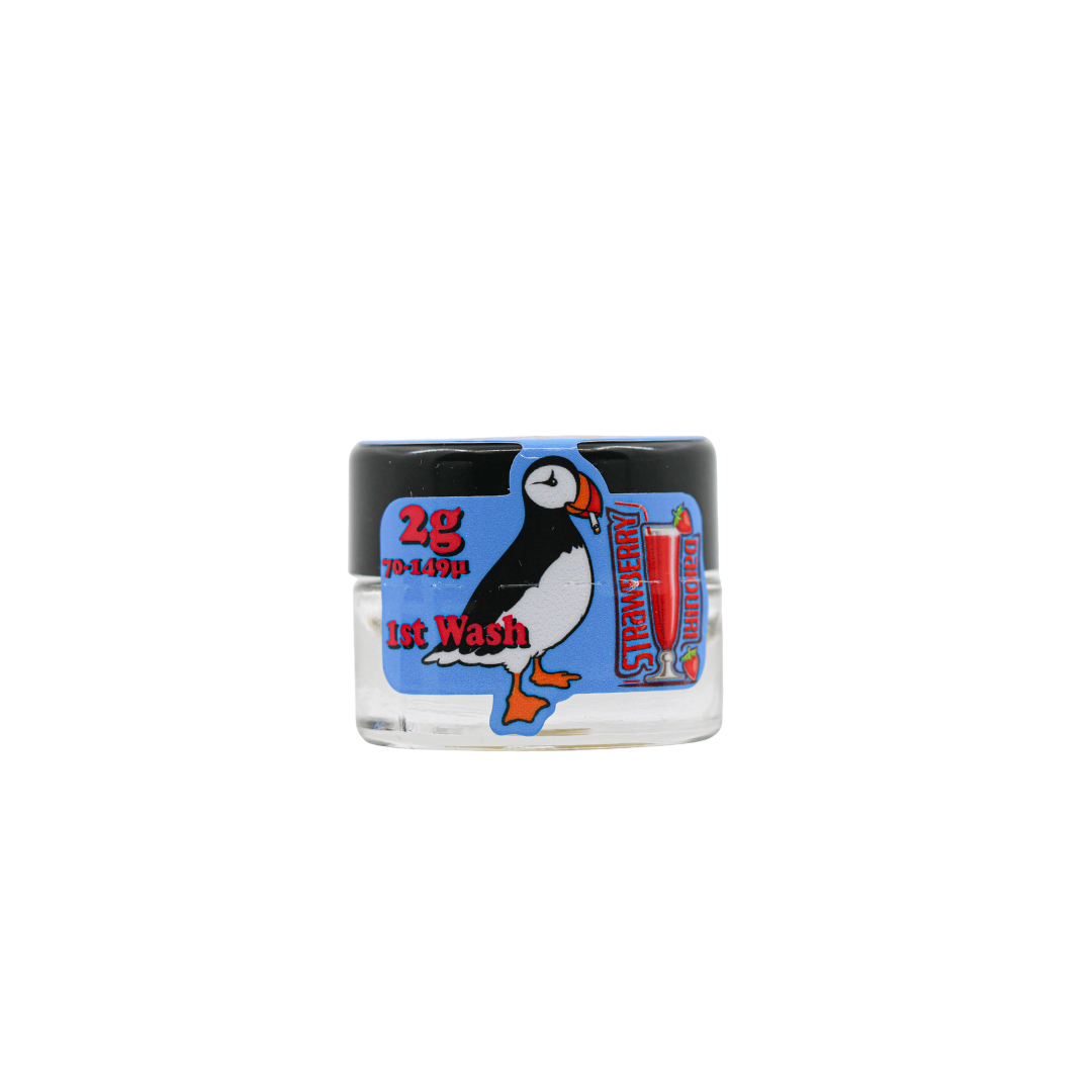 Experience Strawberry Daiquiri Rosin THCa Rosin by Puffin Solventless, a small-batch provider. Strawberry Daiquiri is a balanced hybrid that packs a sweet and sugary fruity strawberry overtone that's accented by fresh woody pine and a touch of spicy diesel.